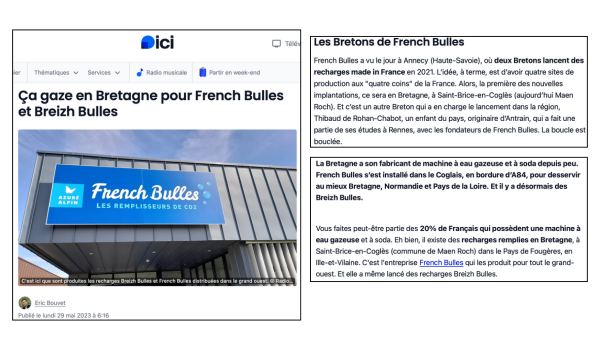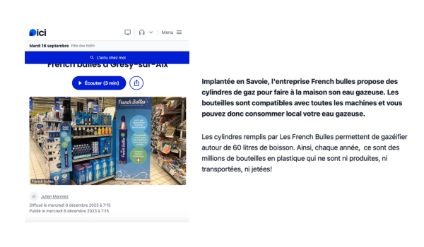 Sélection d’articles et d’émissions où Les French Bulles, Les Breizh Bulles, ou Azuré & Alpin sont mentionnés.